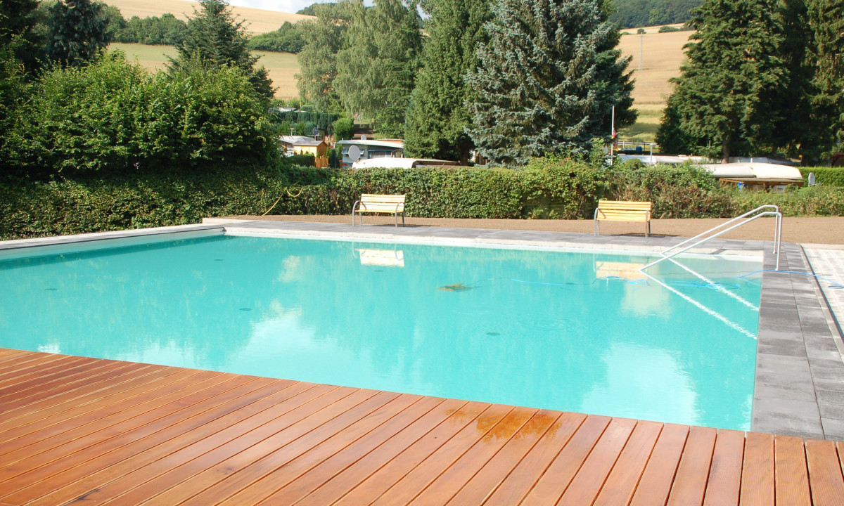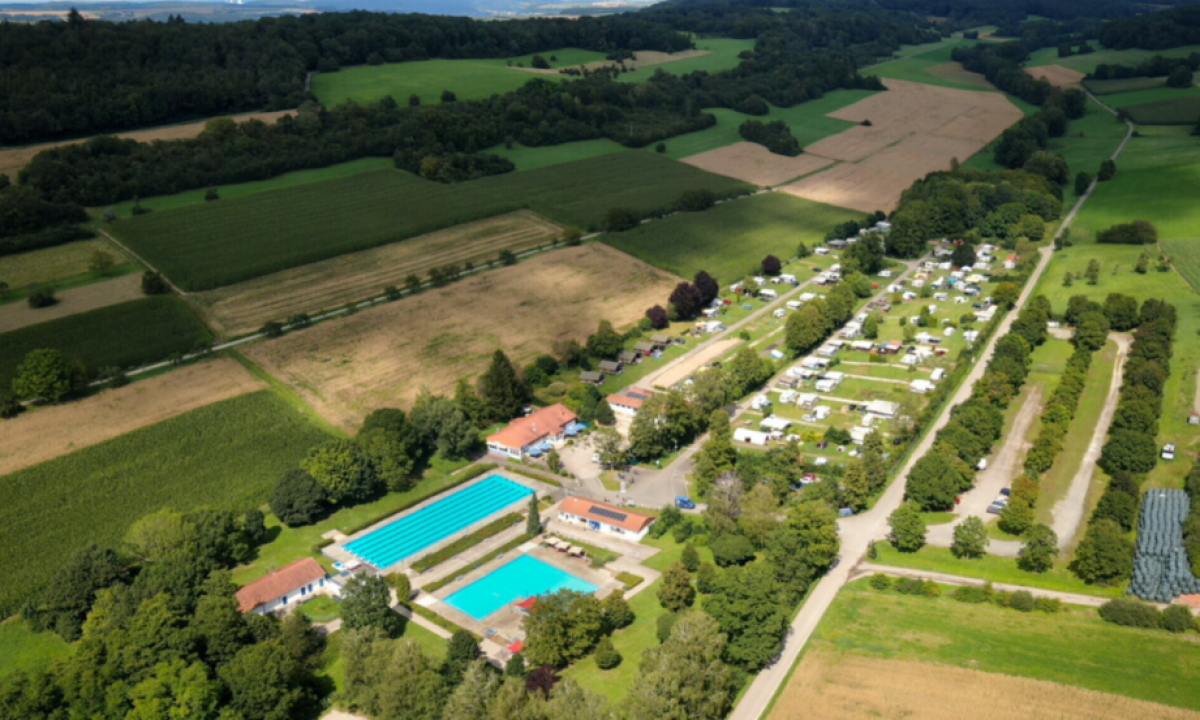 - Kleiner Campingplatz mit Pool im Sommer