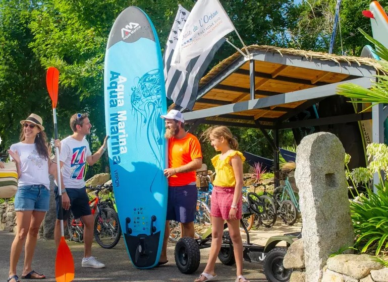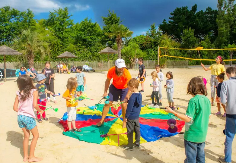 Dank der vielen unterhaltsamen Aktivitäten werden Sie sich während Ihres Campingurlaubs wie in einer großen Familie fühlen. Sie können sich auf dem Volleyballfeld austoben oder sich auf dem Bouleplatz unterhalten. Die Kinder haben Spaß beim Schminken und wenn sie genug davon haben, können sie auf die Hüpfburg oder zu den Tischtennisplatten gehen. Auf dem Campingplatz Marvilla Parks Pommeraie de l'Océan in der Bretagne ist Entspannung eine Selbstverständlichkeit. Sie können Ihr eigenes Essen kochen und sich auf dem Campingplatz mit Lebensmitteln versorgen. Für eine Auszeit vom Kochen haben Sie die Möglichkeit, ins Restaurant zu gehen oder sich für ein leckeres Take-away zu entscheiden.