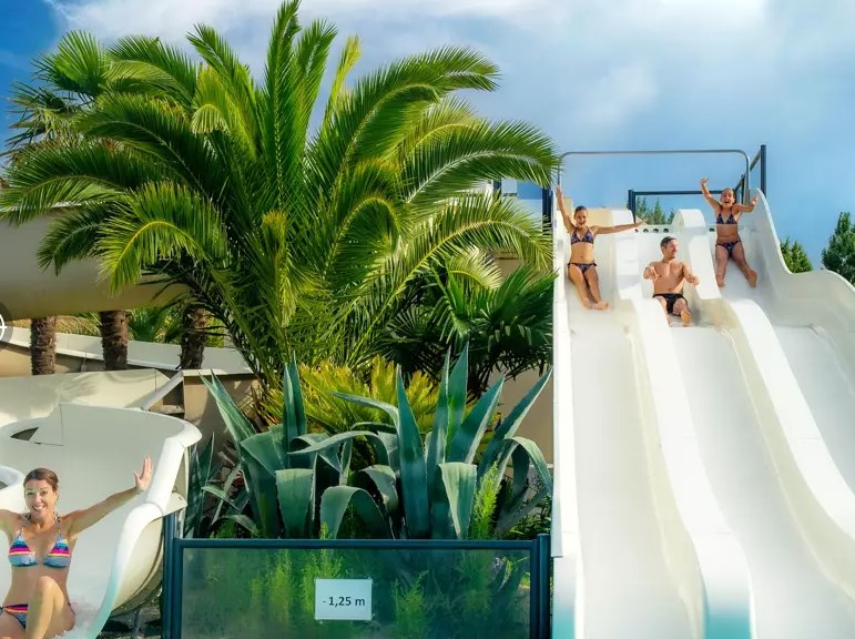 Ihr Kleinkind wird Ihnen voller Stolz von der aufregenden Rutsche im Kinderbecken erzählen. Die älteren Kinder prahlen mit ihrer Riesenrutsche, die so viele Kurven hat. Was sind Ihre Geschichten? Der künstliche Strand rund um den Pool, an dem Sie unter wogenden Palmen entspannen können? Oder sind Sie von der Größe des Schwimmbadkomplexes überrascht? Ein schöner 250 Meter langer Weg führt Sie zu den zahlreichen Buchten und Stränden. Die Qualität des Badewassers ist hervorragend und die Farbe atemberaubend.