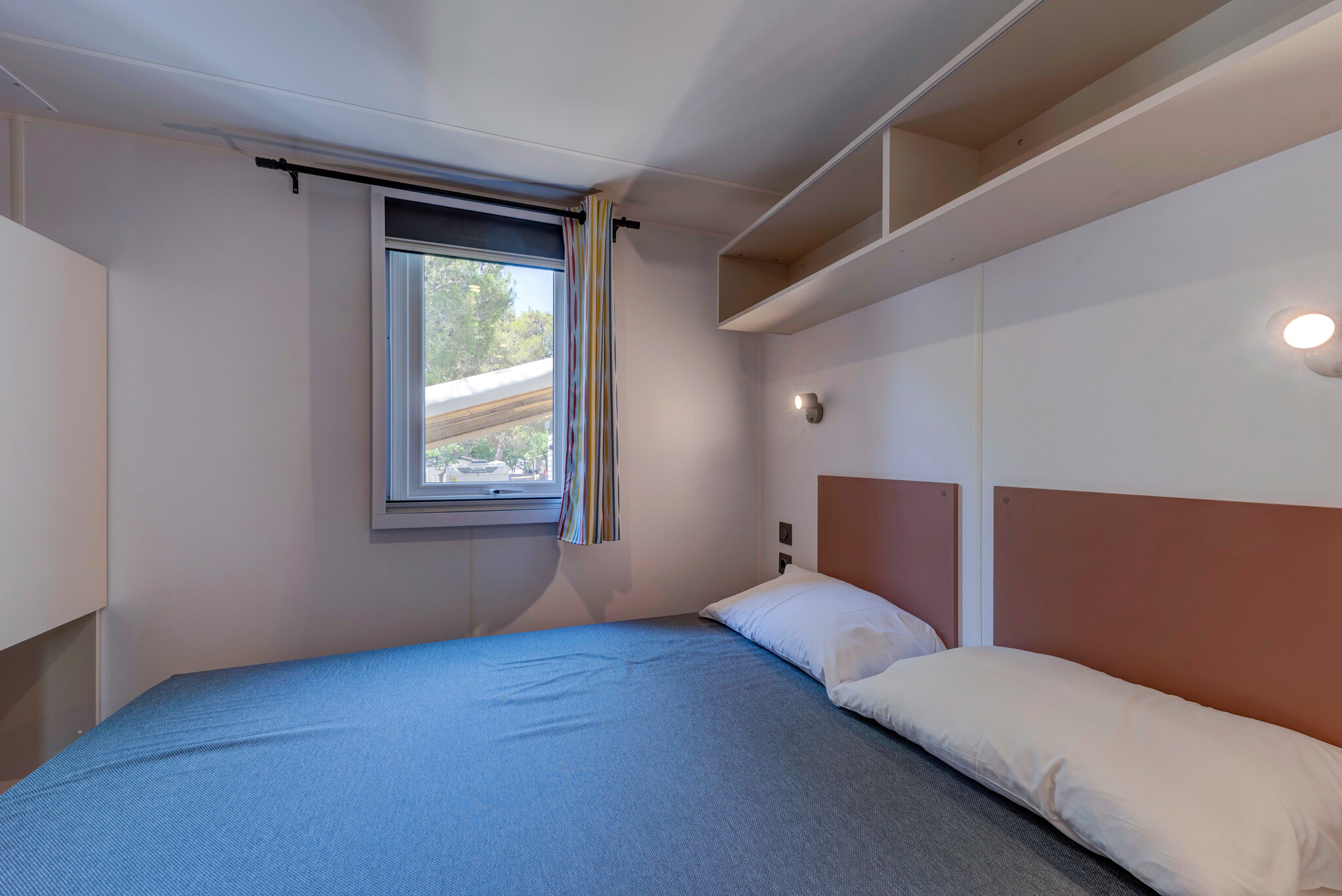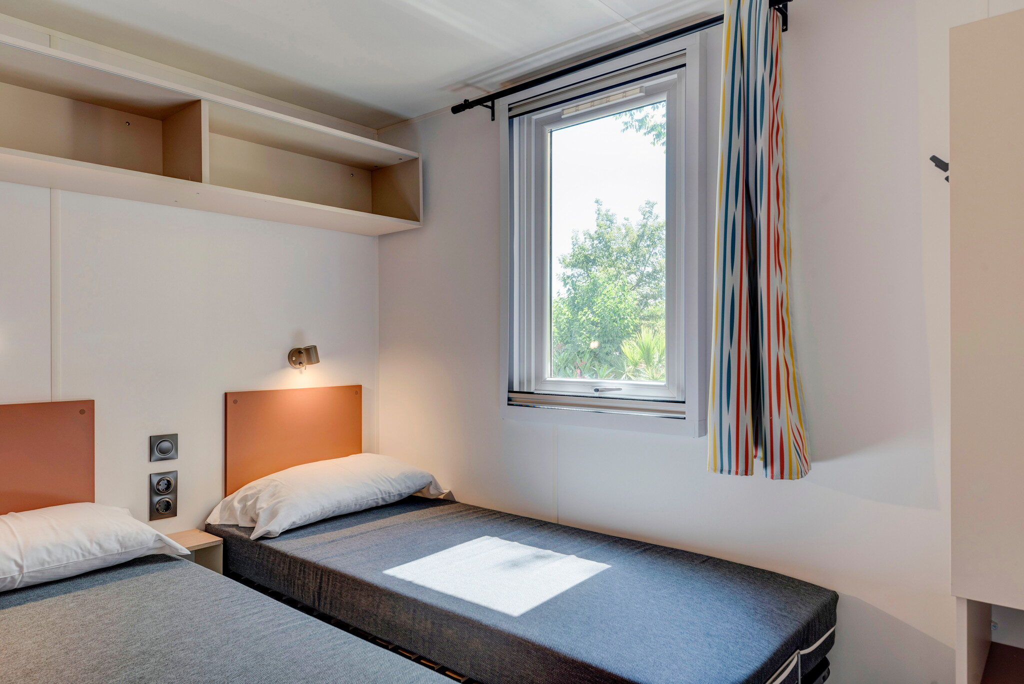 Kein Schwimmer kommt bei diesem Campingurlaub im weitläufigen Wasserpark nicht auf seine Kosten. Hier finden Sie Becken für alle Altersgruppen, vom Planschbecken mit Fontänen bis zum Sportbecken für Schwimmer. Außerdem gibt es Rutschen sowie Liegestühle und Sonnenschirme unter den anmutigen Palmen. Nur wenige hundert Meter entfernt kann man am Strand Wassersport treiben und Strandburgen bauen.
