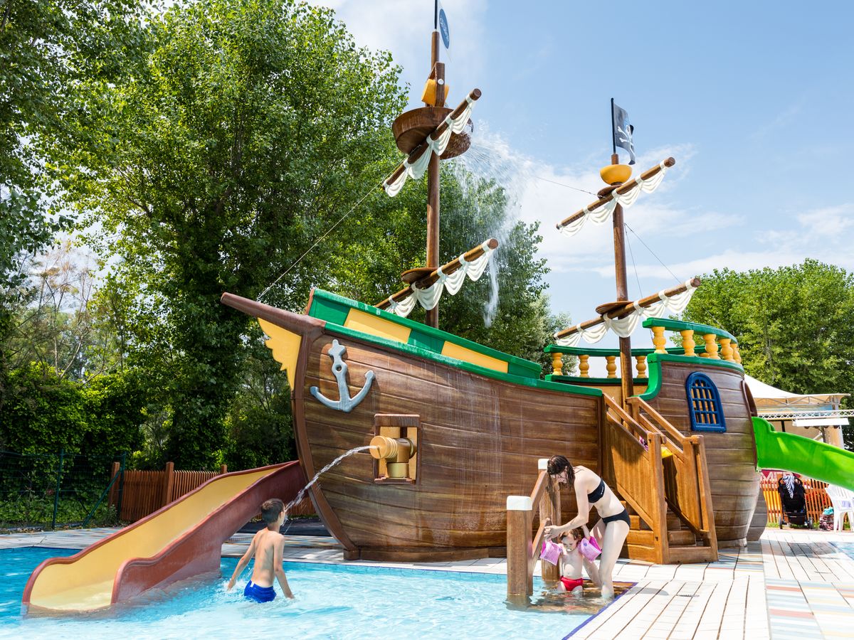 Ihre Kinder langweilen sich im Urlaub auf Ca’Savio bestimmt nicht! Hier gibt es außer dem 800 m breiten Sandstrand auch mehrere Pools. Ganz bekannt und auf allen Bildern zu sehen ist natürlich das große Piratenschiff mit vielen kleinen Rutschen und Wasserkanonen.