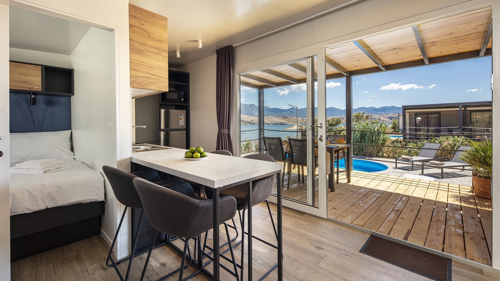 Für Sonnenanbeter und Wasserratten lohnt es sich definitiv, in dieser Ferienanlage ein Mobilheim zu buchen. Der Campingplatz Terra Park SpiritoS verfügt über einen direkten Zugang zum wunderschönen Kiesstrand Phalaris, der zu den hübschesten Buchten auf Pag gehört. Genießen Sie ein entspanntes Sonnenbad auf einer Liege und gönnen Sie sich anschließend eine Erfrischung in der kristallklaren Adria. Wassersportler äußern sich immer wieder begeistert über die Bedingungen an diesem herrlichen Küstenabschnitt. Das ist Camping in einem kleinen, aber feinen Land mit viel Charme!