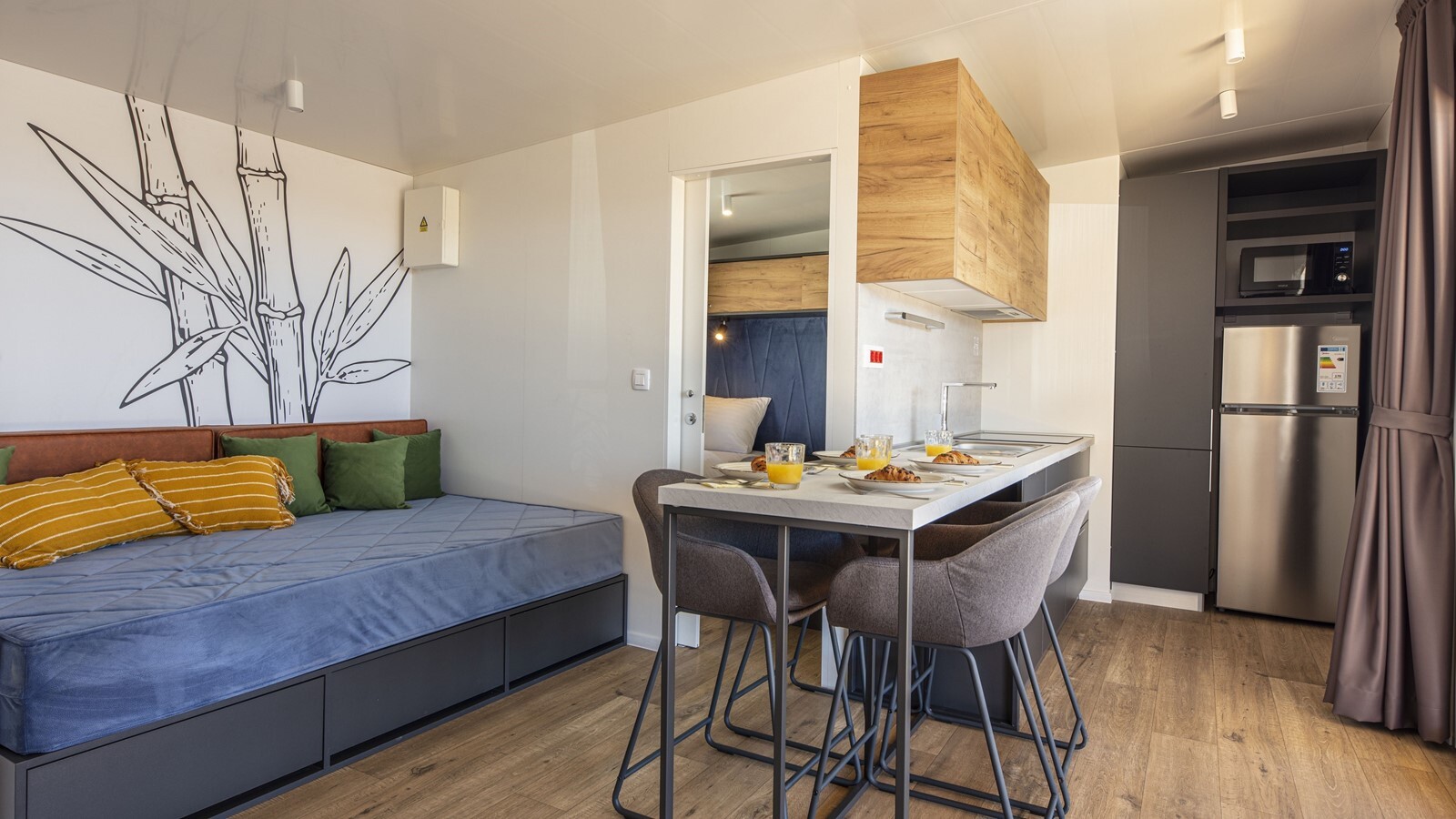 Restaurant, Bäckereien und Obstläden versorgen Sie täglich mit frischen Lebensmitteln. Die Besonderheit des Campingplatzes Terra Park SpiritoS ist die Konzentration auf die ökologische Nachhaltigkeit. Das Essen wird mit Bio- oder lokalen Lebensmitteln zubereitet, das Team fördert Öko-Aktivitäten und es gibt einen Fahrradverleih. Das ist Luxus-Camping für Menschen, die sich mit den Wechselbeziehungen zwischen sich und ihrer Umwelt befassen.