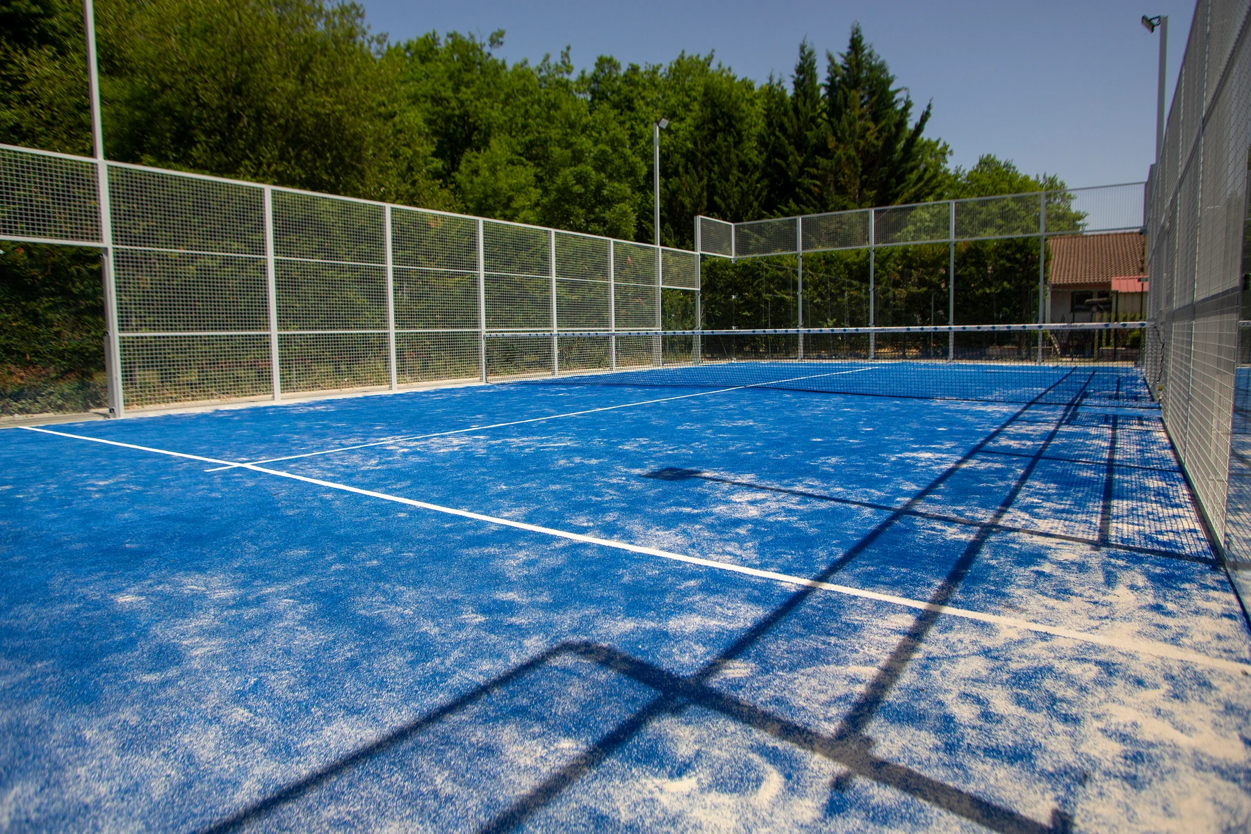 Der Pool kann mit olympischen Becken mithalten. Er eignet sich perfekt zum Rundenschwimmen, aber auch für Ballspiele und andere Wasserspiele. Die Kinder toben im und um den großen Pool herum, während die Kleinsten sicher und ruhig im separaten Planschbecken spielen. Auf der Liegewiese mit ihren vielen schattenspendenden Bäumen können Sie sich entspannen.